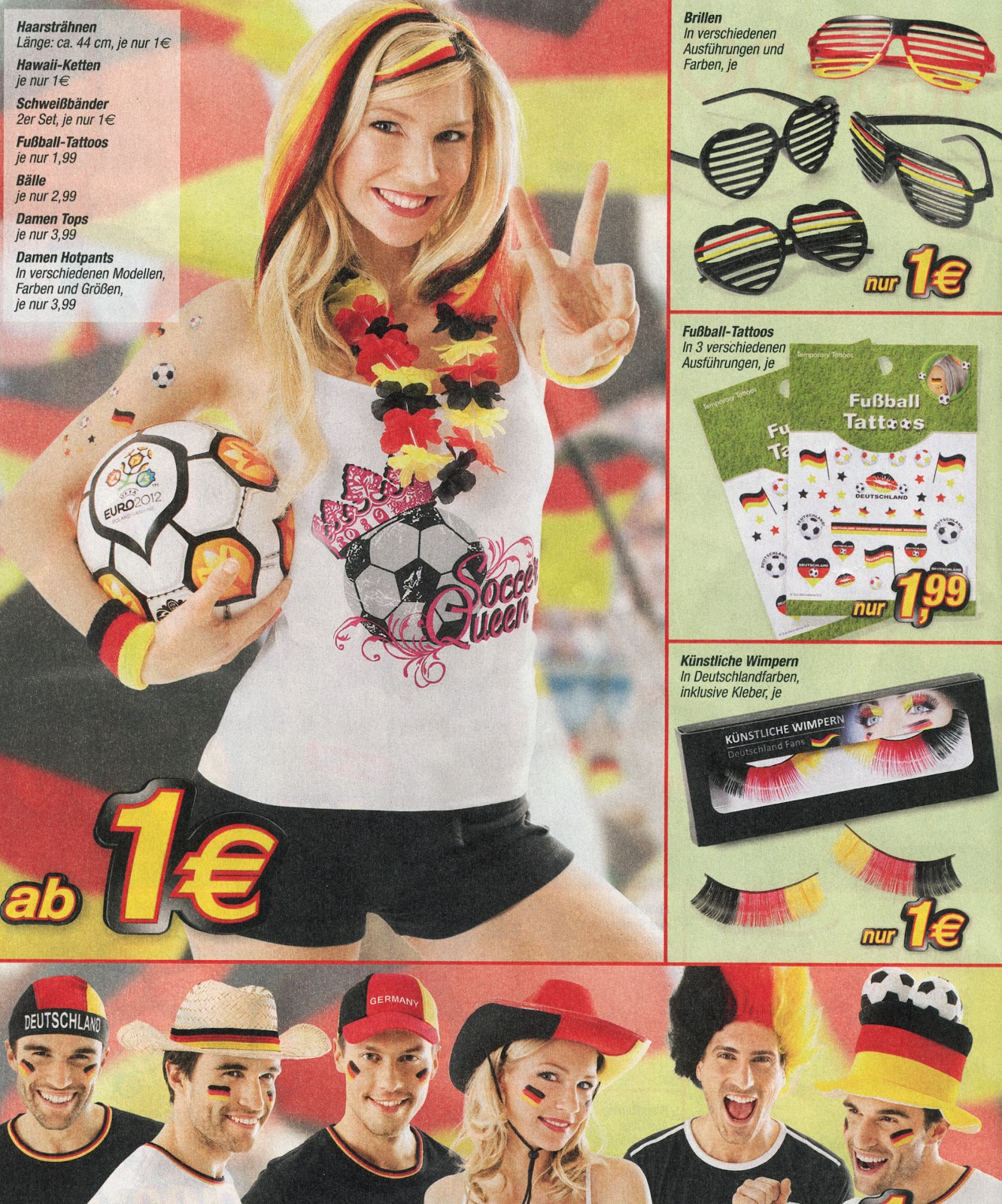 Com a aproximação do Campeonato Europeu de Futebol (à parte a polémica política com a Ucrânia), os alemães apetrecham-se com adereços, que estão cada vez mais baratos.